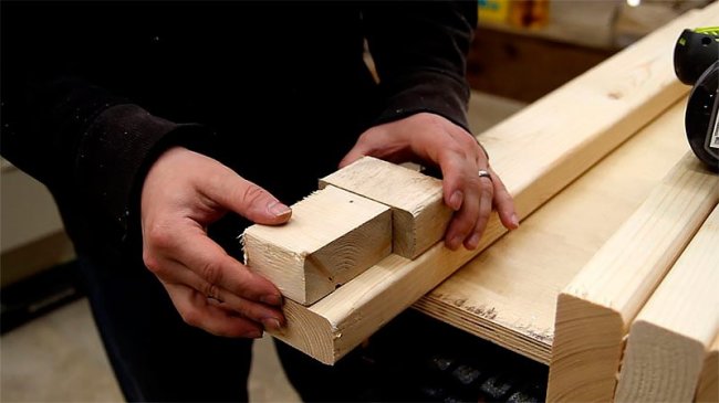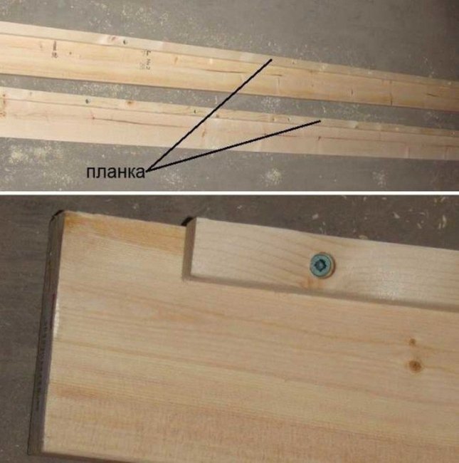 На 190 см досках, отступив с каждого края по 30 см, с обеих торцевых сторон сверху и снизу делаем пазы под ширину перекладин 3,5х10 мм.