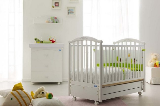 Для новорожденных конструкция кровати должна немного отличаться. Ее стандартный размер составляет 120х60 см, по достижению малышом 3-х лет она станет для него тесноватой. При планировании стоит учесть возможность регулирования высоты ложа. Когда ребенок маленький, его удобно расположить повыше, а как только он научится вставать, для безопасности дно придется опустить.
