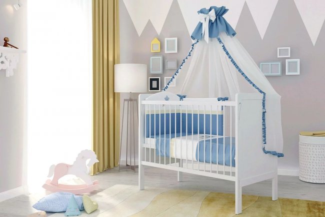 Подзор. Это обрамление нижнего края спального места. Он закрывает нижнюю часть мебели, что позволит отлично замаскировать некоторые ошибки, допущенные при самостоятельном изготовлении кроватки.
