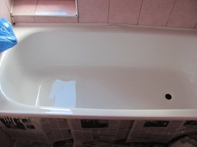 Покрывать «купальню» жидким акрилом сейчас стараются многие, хотя данное покрытие более дорогостоящее, чем из эмали. Изделие приобретает эстетичный вид, оно безопасно даже для нежной детской кожи. В качественно нанесенном акриловом слое не поселяются болезнетворные микробы, так как в данном полимере почти нет пор. Акриловый слой при аккуратном уходе прослужит более пяти лет (максимум – 12-15), без потери внешнего вида.