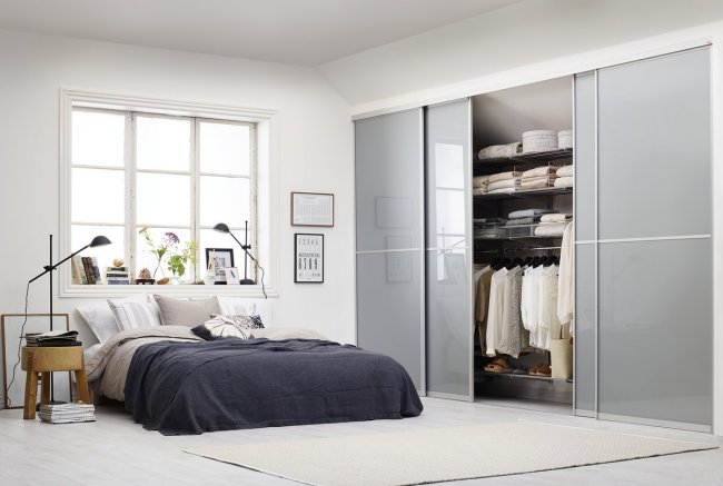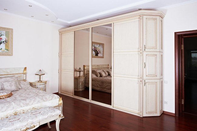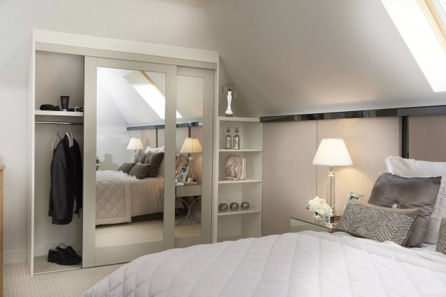 Шкаф-купе можно смело назвать интимной мебелью, ведь в спальную комнату редко зовут гостей. С выбором подобной конструкции также не возникнет особых проблем. Существует большое разнообразие различных моделей. Можно встретить как отдельностоящие варианты, так и встраиваемые в нишу, либо устанавливаемые вдоль единой глухой стены. На рынке также представлены Г-образные и П-образные виды гардеробных.