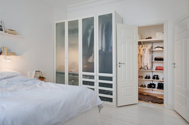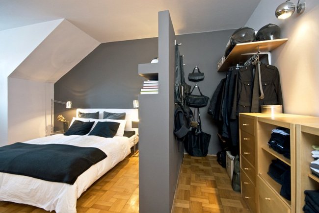 Маленькие квартиры, построенные в 60-х годах, не имеют достаточной площади комнат. Разместить в спальне большую кровать и по минимуму необходимую мебель будет уже сложно. Именно поэтому владельцы такой недвижимости часто задумываются об установке в комнате отдыха отдельной раздевалки.