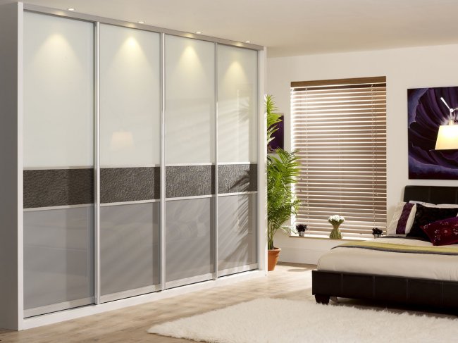 Один из самых популярных и экономичных вариантов для хозяйских спален с любой планировкой. Особенно такие проекты дверей подходят для маленьких комнат, в которых просто необходимо экономить пространство. Относительно конструкции раздвижные двери на роллетах в гардеробную можно поделить на следующие типы:
