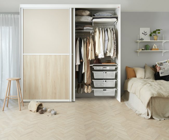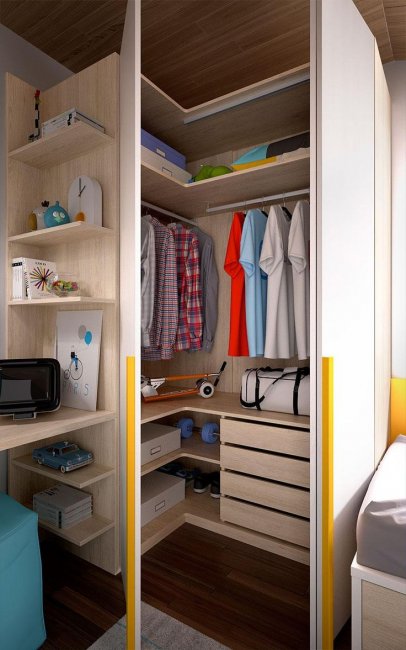 Следующим шагом при составлении проекта станет определение количества пользователей: один человек, супруги, вся семья. В идеальном варианте у каждого проживающего должен быть свой отдельный уголок, но в малогабаритных, особенно однокомнатных квартирах это невозможно. Далее следует составить перечень вещей для хранения, рассортировать их, предусмотреть для них отдельные полочки, ящики, вешалки, коробки и корзины.