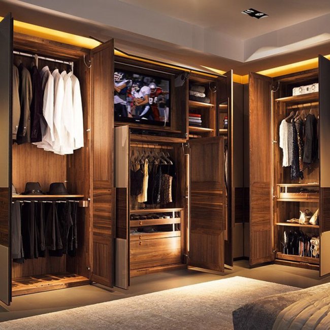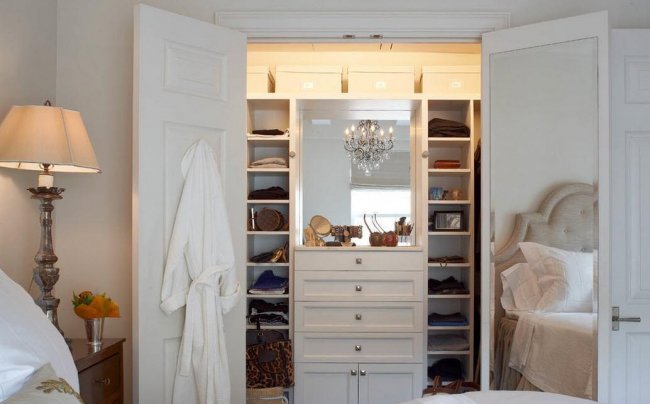 При строительстве большого особняка можно в проекте предусмотреть специальную комнату для сохранности личных аксессуаров, оборудовать в ней хорошую вентиляцию, систему поддержания нужного температурного режима, общее и локальное освещение. Однако для небольших домов или квартир такой подход практически неосуществим. Но и в стесненных условиях, к примеру, в собственной спальне можно организовать компактную и функциональную гардеробную.