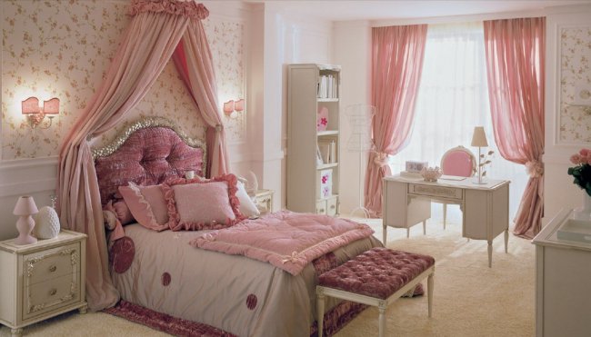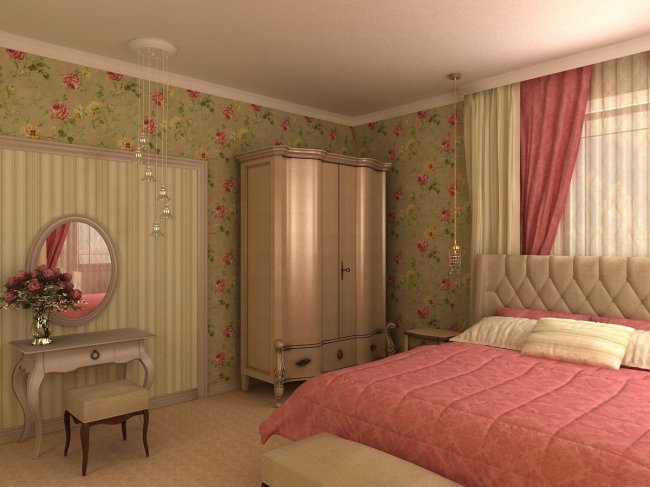 Монохромная комната в розовой гамме быстро надоест, даже романтичной девушке. Для французского кантри выбирают «выгоревшие оттенки»: кремово-розовые, серебристо-розовые, бледно-лиловые. При объединении розового с бежевым, молочным, серым, оливковым цветом появляется равновесие, интерьер не воспринимается как чисто женский. В прованском стиле популярна комбинация розовых стен, белой мебели. Немного пестроты добавляют занавески с растительным орнаментом цвета вереска, бледной зелени, бордо, лаванды. В дизайне спальни розовый оттенок можно использовать как дополнительный. Удачно комбинируется белая мебель, светло-оливковые стены с бледно-розовым текстилем. Выразительно смотрится кораллово-розовая акцентная стена на фоне кремовых и светло-серых поверхностей.