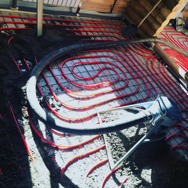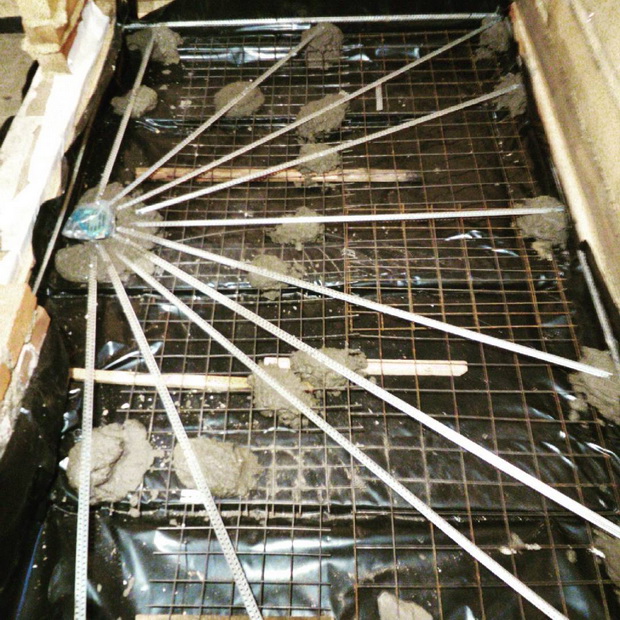 По этой причине в стяжку обычно укладывается греющий кабель или трубопровод с горячей водой. Работы по обустройству системы начинаются на этапе строительства фундамента. Монтируется сливная труба для отвода стоков. От нее выводится патрубок на высоту ниже будущего финишного покрытия на 5 см. Если планируется деревянный пол, укладывается гидроизоляция, закрывающая все пространство внутри фундамента.