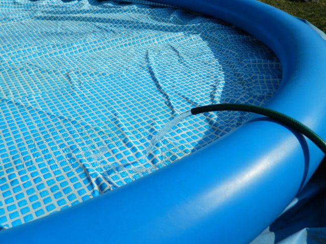 2. На время отсутствия на даче закрывайте бассейн крышкой или покрывалом. Это защитит воду от загрязнений, переносимых по воздуху, и замедлит рост водорослей. Увы, днём крышка мешает прогреву воды, но с этим придётся смириться.