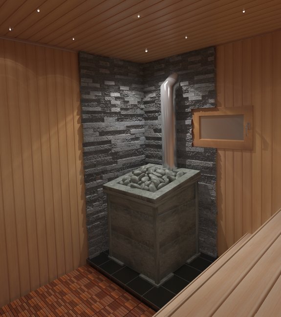 Интерьер сауны традиционно выстраивают вокруг каменки. Фото: Helo