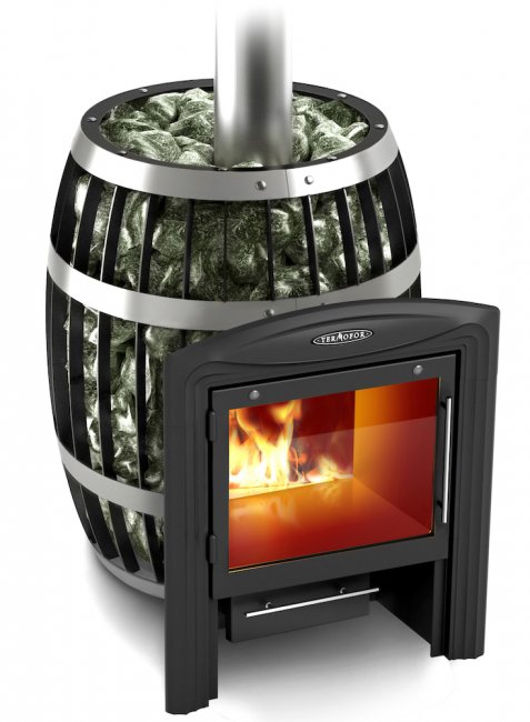 Она украсит баню, но потребует кропотливого ухода. Чтобы видеть огонь, её необходимо регулярно чистить от копоти.