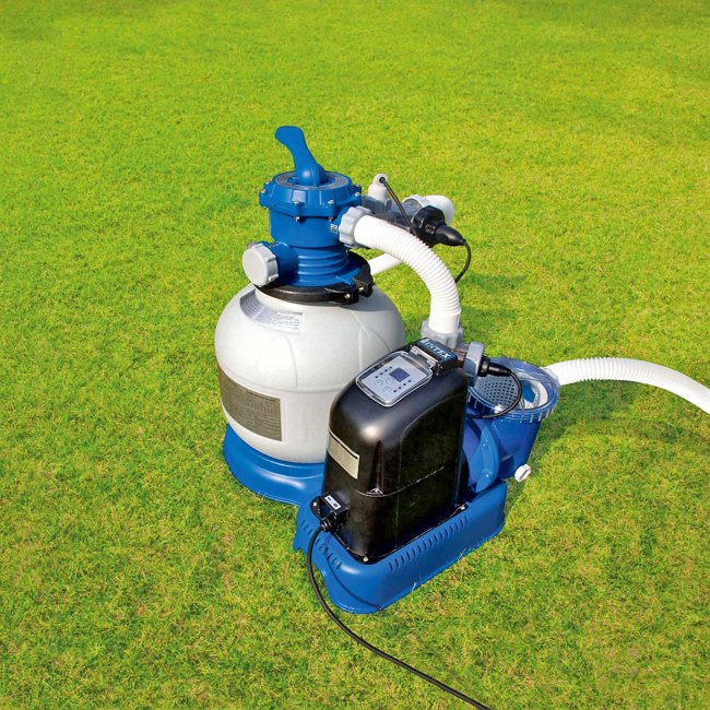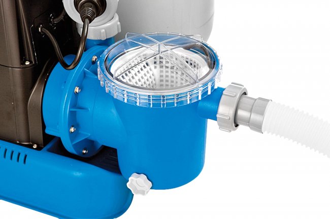 Насосы с картриджным гофрофильтром предназначены только для наземных бассейнов объёмом менее 20 м3. Они требуют промывки раз или даже два в сутки и обладают сравнительно невысокой производительностью. К тому же каждый год придётся покупать несколько новых картриджей, которые со временем забиваются трудносмываемыми мелкими илистыми частицами. Модели с тканевым фильтром обладают производительностью до 20 м3/ч и нуждаются в обслуживании один раз в 3–6 дней. Правда, подобные агрегаты довольно сложно найти в продаже — в основном их производят (на базе готового насосного оборудования) небольшие фирмы, специализирующиеся на монтаже заглублённых бассейнов. Самая высокая производительность у песочных устройств; песок требует обратной промывки потоком воды раз в 7–14 дней.
