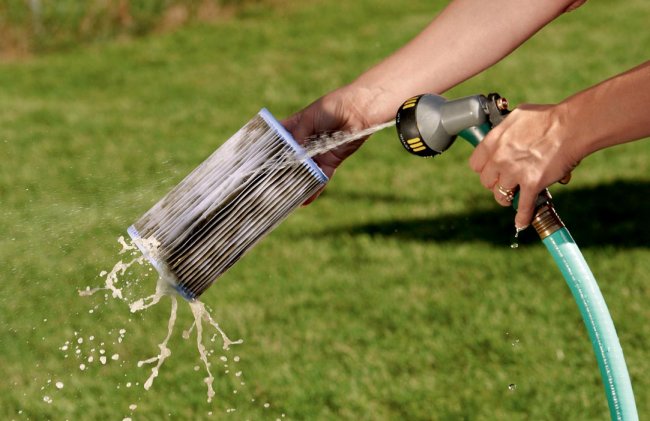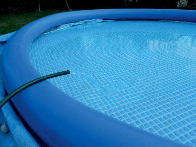 Борьбу с бактериями, водорослями и иными загрязнениями надо начинать с момента установки бассейна. Желательно сразу обработать стенки и дно чаши дезинфектором. Если вы берёте воду из колодца или летнего водопровода, следует пропустить её через фильтр грубой очистки, задерживающий частицы песка, ржавчины и глины (такие устройства для систем полива нетрудно найти в строительных гипермаркетах, например в Leroy Merlin).