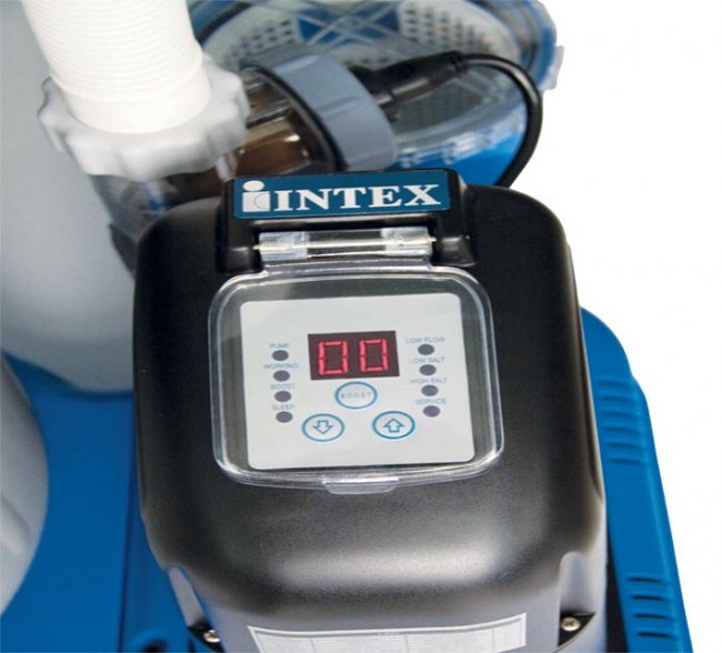На дисплее хлоргенератора должны отражаться данные о содержании соли и уровне связанного хлора. Без этой информации невозможно обеспечить эффективную работу прибора. Фото: INTEX