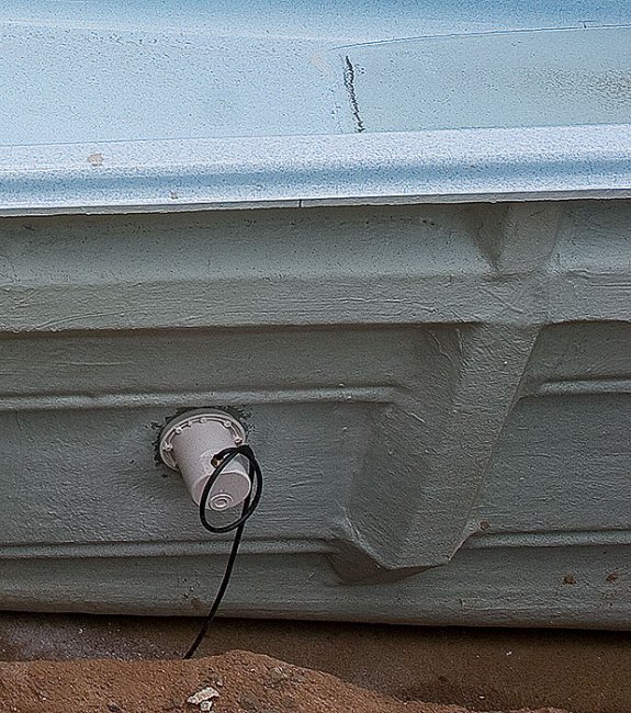 Вборьбе с нагрузками изготовители используют и другие приемы. Одни делают свои бассейны овальными или полукруглыми. Врезультате изделия нормально воспринимают давление воды, наполняющей бассейн, или грунта при его сезонных подвижках. Другие, производя чаши прямоугольной формы, обязательно создают на их наружной поверхности отчетливо заметные горизонтальные и вертикальные ребра жесткости. При этом между слоями композита они нередко прячут мощные металлические или стеклокомпозитные закладные элементы.