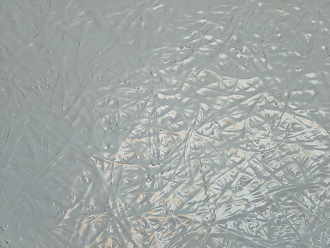 5-6.Внешняя поверхность чаши, покрытая слоем топкоута, под которым отчетливо просматривается текстура стеклорогожи(5). Такая же поверхность, но под ней хорошо видны волокна стеклоровинга(6)- значит, силовой слой отсутствует.
