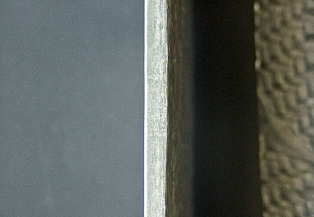 Вы заметили на срезе минеральные (причем совсем не керамические) включения? Имейте в виду: изготовитель, чтобы сберечь свои средства, ввел в смолу минеральные наполнители: мраморную муку, порошковую глину, песок ит.п. (нанесение такого состава автоматизировано, что также позволяет сэкономить).