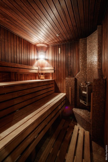 Сауна - финская баня. Традиционные деревянные сауны по устройству такие же, как деревенские русские бани. Отделка саун у Финнов делается хвойными породами дерева. Температура высокая, около 80-100 °С, а хорошая переносимость объясняется крайне низкой влажностью – в классической финской сауне не принято «поддавать» пару.