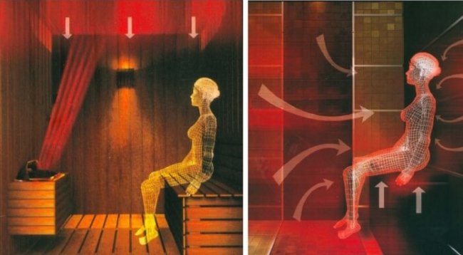 Инфракрасная сауна за счет специального инфракрасного излучателя, нагревает вас, а не воздух, поэтому ваш организм хорошо прогревается, а дышите вы обычным воздухом комнатной температуры. Так вы не обжигаете себе органы дыхания, которые часто перегреваются в обычной сауне.