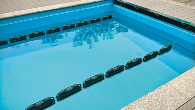 Далее устанавливают компенсаторы расширения замерзающей воды — закрытые пустые пластиковые ёмкости, куски пенопласта (лучше — беспрессового пенополистирола) и т. п. К компенсаторам нужно привязать груз, чтобы они были притоплены примерно на две трети. Лучший вариант — расположить вдоль бортов, на расстоянии 10–30 см от стенок чаши, непрерывный вертикальный ряд связанных тросом пенопластовых плит толщиной 50–100 мм. В завершение желательно накрыть зеркало воды покрывалом, чтобы облегчить весеннюю чистку бассейна от опавшей листвы и прочего мусора.