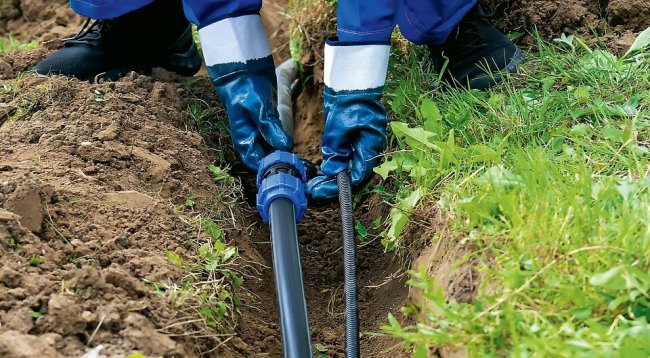 Итак, у вас есть источник воды. В качестве него может выступать скважина, колодец с питьевой водой или технический колодец на улице, в котором проходит коммунальная труба и предполагается подключение вашей (врезка). В любом случае уличный трубопровод для круглогодичного использования должен быть заглублён ниже уровня промерзания грунта, чтобы вода в нём не замерзала даже в самые сильные и продолжительные морозы.
