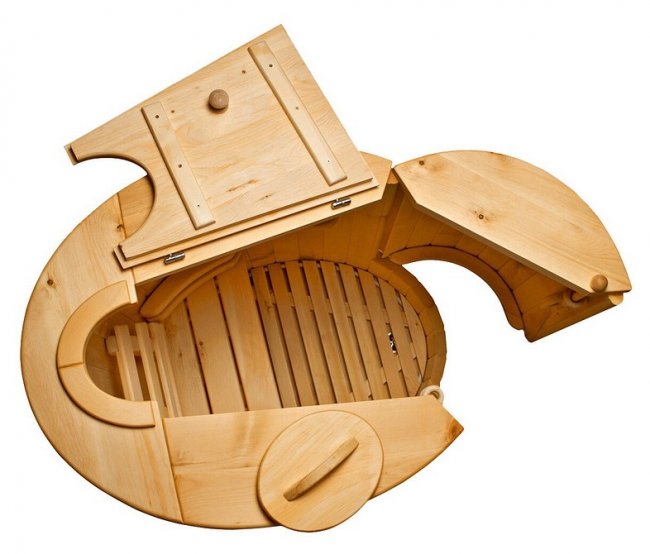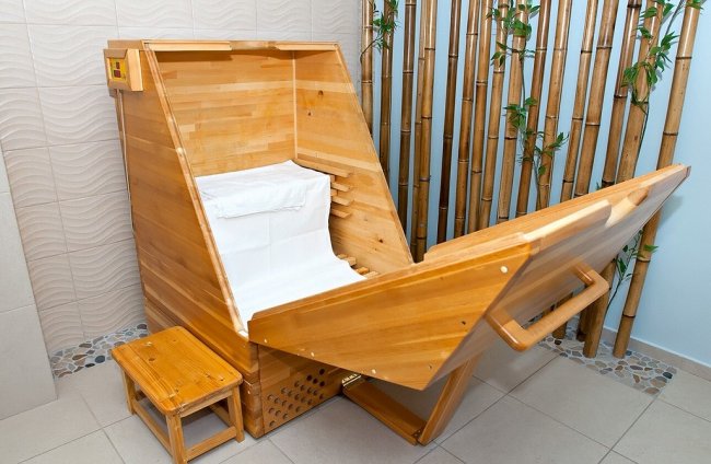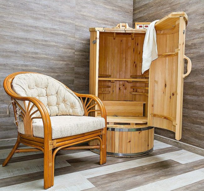 Особняком стоят фитобочки с суховоздушной вихревой установкой, для которой предусматривается особый отсек в нижней части конструкции. Режим парения в данном случае напоминает финскую сауну, а для сеансов фитотерапии предусмотрено холодное распыление настоев и бальзамов.