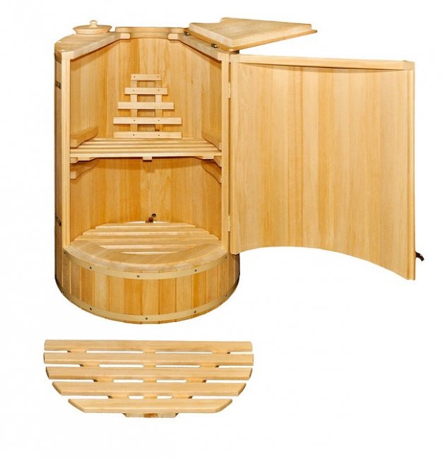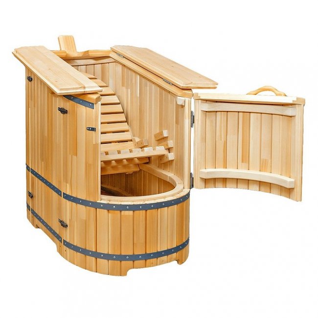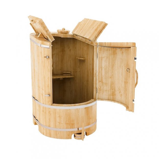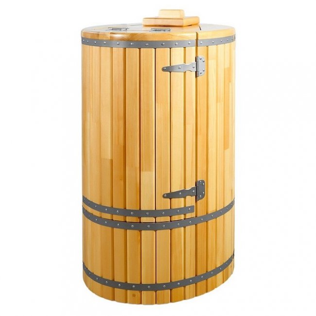 Как правило, высота круглой вертикальной бочки составляет 130 см, а диаметр — около 80 см. Широко распространены также более объёмистые овальные модели, в которых чувствуешь себя не так стеснённо. Цена круглых изделий (без учёта парогенератора) стартует от 24 тыс. руб., овальные стоят на 5-10 тыс. руб. дороже.Кроме традиционных бочек в продаже есть также разнообразные прямоугольные короба, в том числе сборно-разборные. Такой короб можно легко перевозить с места на место, даже брать собой на пикник, а по комфортабельности он почти не уступает овальной модели.