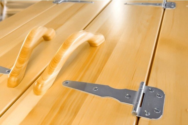 Дверцы оснащают простейшими накладными («калиточными») петлями из оцинкованной стали.