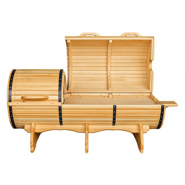 Производители предлагают две основные разновидности бочек — вертикальную (с сиденьем) и горизонтальную (с лежанкой), причём первые намного популярней в силу своей компактности.