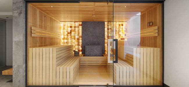 В парном должна быть обеспечена хорошая вентиляция. Все ручки, защелки и замки дверей должны быть деревянными. Хорошо, если снаружи дверь будет закрываться на скобу с подвесным замком. Следует сказать, что в последнее время большой популярностью пользуются стеклянные двери. Закаленное, 8-мм стекло отличается высокой ударопрочностью и термостойкостью. Короб, изготовленный из клееного бруса, не будет коробиться и деформироваться под воздействием высоких температур и пара. Для стеклянных дверей для бань предусмотрены регулируемые петли, рассчитанные на большую нагрузку, так, одна петля рассчитана на 20 кг.